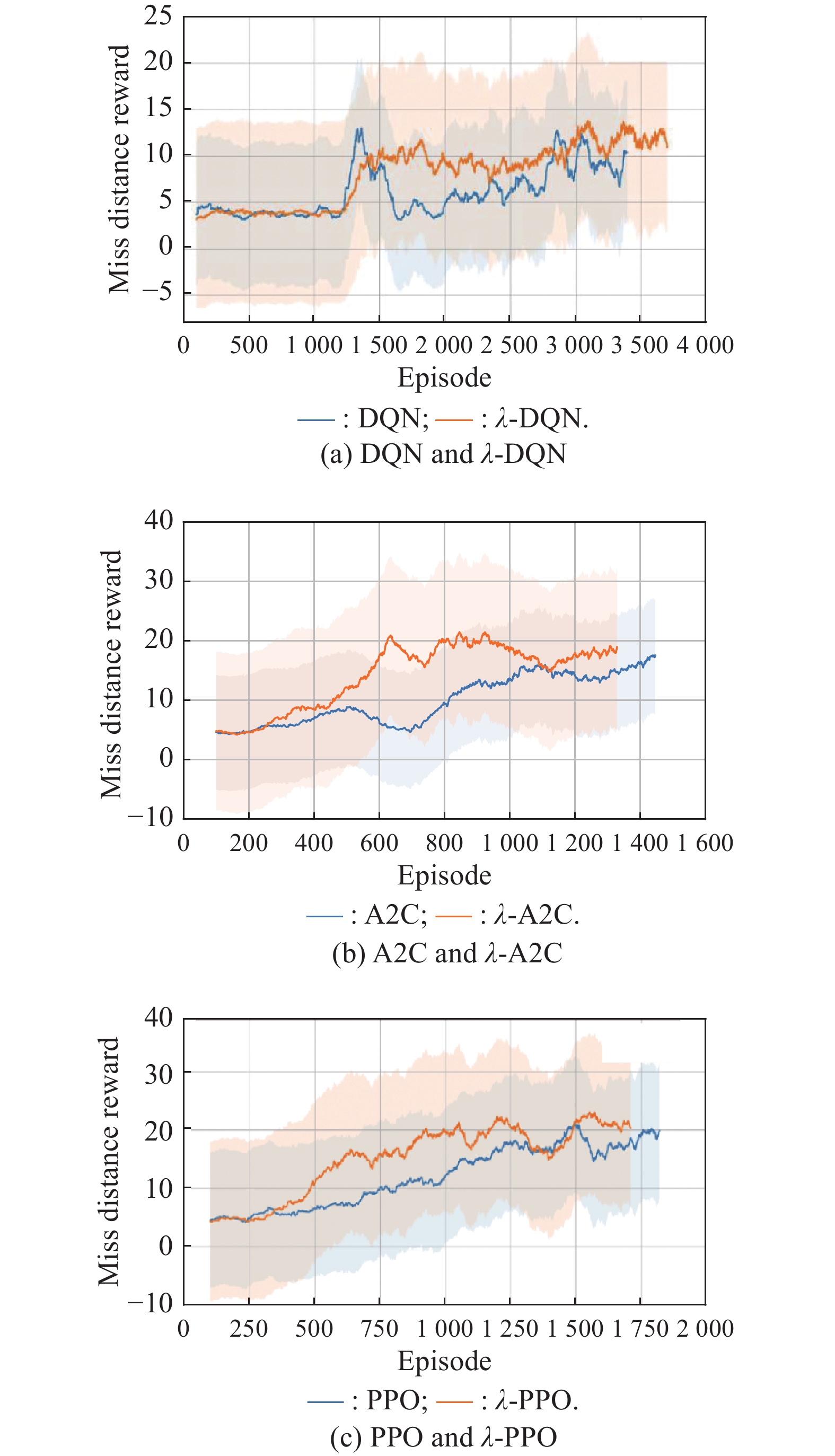 Aiming at the terminal defense problem of aircraft, this paper proposes a method to simultaneously achieve terminal defense and seize the dominant position. The method employs a λ-return based reinforcement learning algorithm, which can be applied to the flight assistance decision-making system to improve the pilot’s survivability. First, we model the environment to simulate the interaction between air-to-air missiles and aircraft. Subsequently, we propose a λ-return based approach to improve the deep Q learning network (DQN), deep advantageous actor criticism (A2C), and proximity policy optimization (PPO) algorithms used to train manoeuvre strategies. The method employs an action space containing nine manoeuvres and defines the off-target distance at the end of the scene as a sparse reward for algorithm training. Simulation results show that the convergence speed of the three improved algorithms is significantly improved when using the λ-return method. Moreover, the effect of the fetch value on the convergence speed is verified by ablation experiments. In order to solve the illegal behavior problem in the training process, we also design a backtracking-based illegal behavior masking mechanism, which improves the data generation efficiency of the environment model and promotes effective algorithm training.