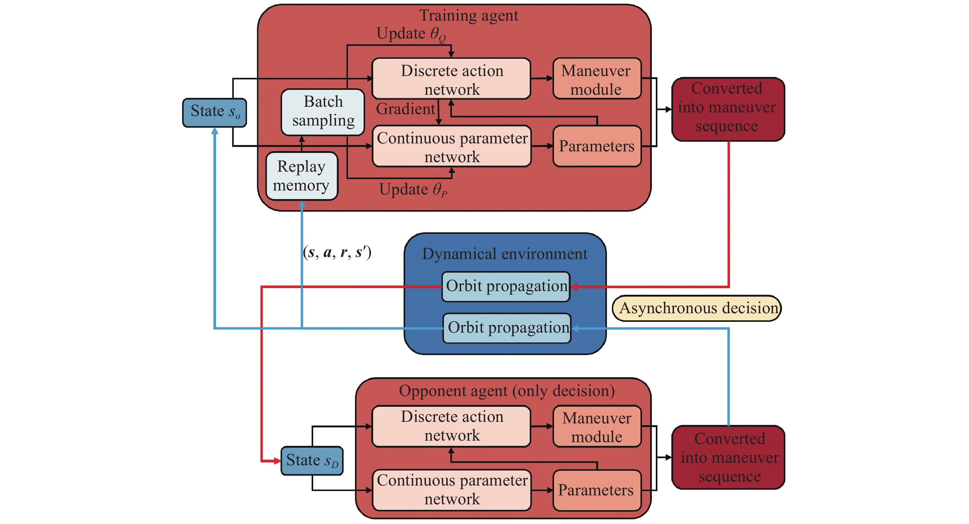 ZHAO L R, ZHANG Y L, DANG Z H PRD-MADDPG: an efficient learning-based algorithm for orbital pursuit-evasion game with impulsive maneuvers. Advances in Space Research, 2023, 72 (2): 211- 230.
