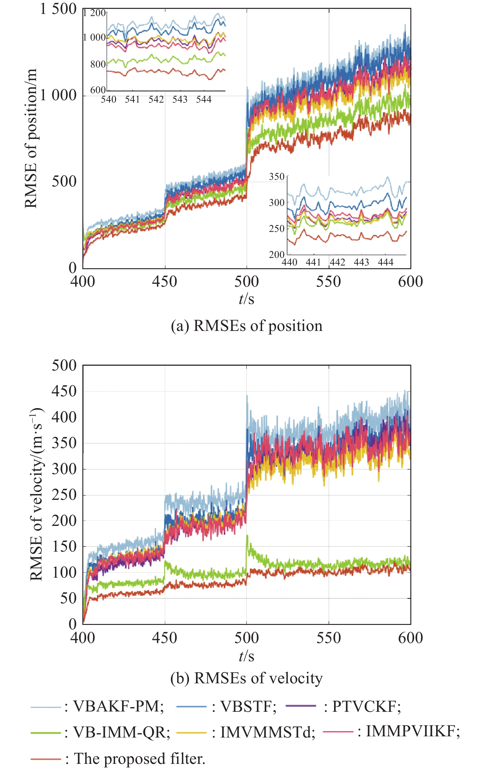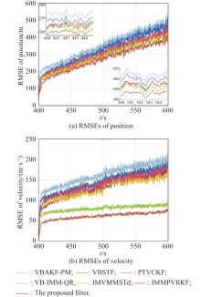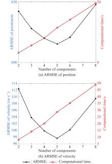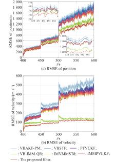 | Filtering algorithm | ARMSE of position/m | ARMSE of velocity/(m/s) | Time/s |