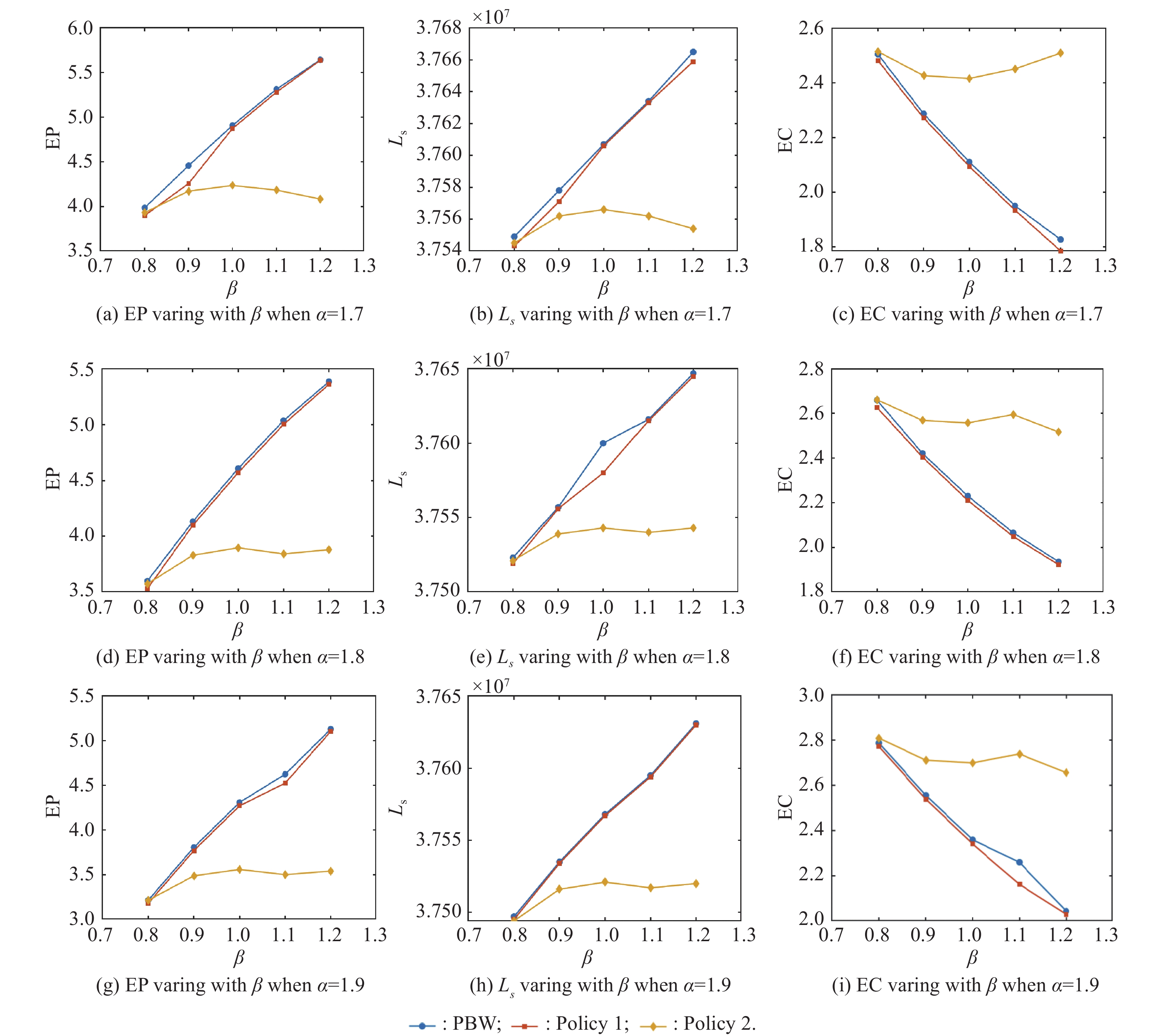 Influence of the scale parameter ${\boldsymbol{ \beta}} $ on the optimal warranty policies when ${\boldsymbol{ \alpha}} {\boldsymbol{=}} {\boldsymbol{1.9}} $"